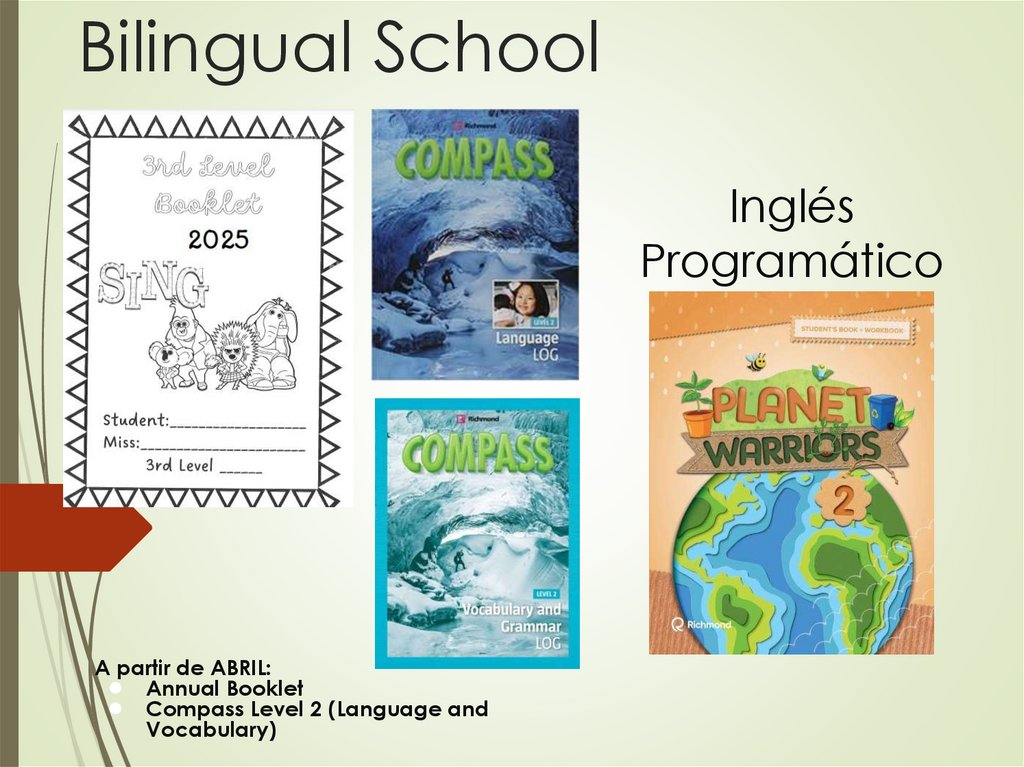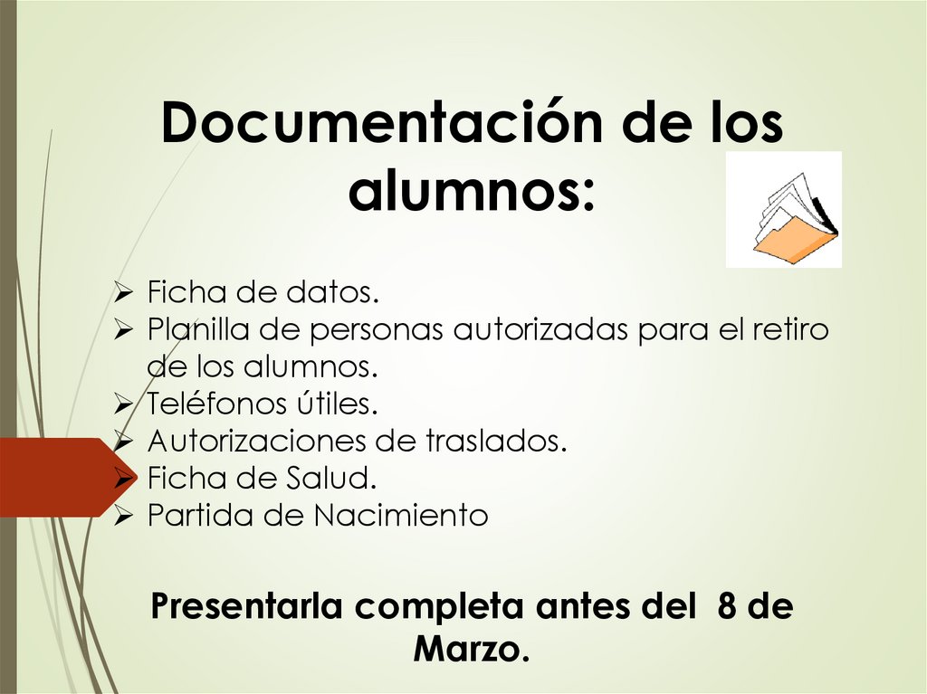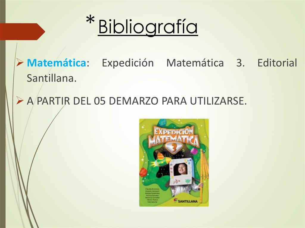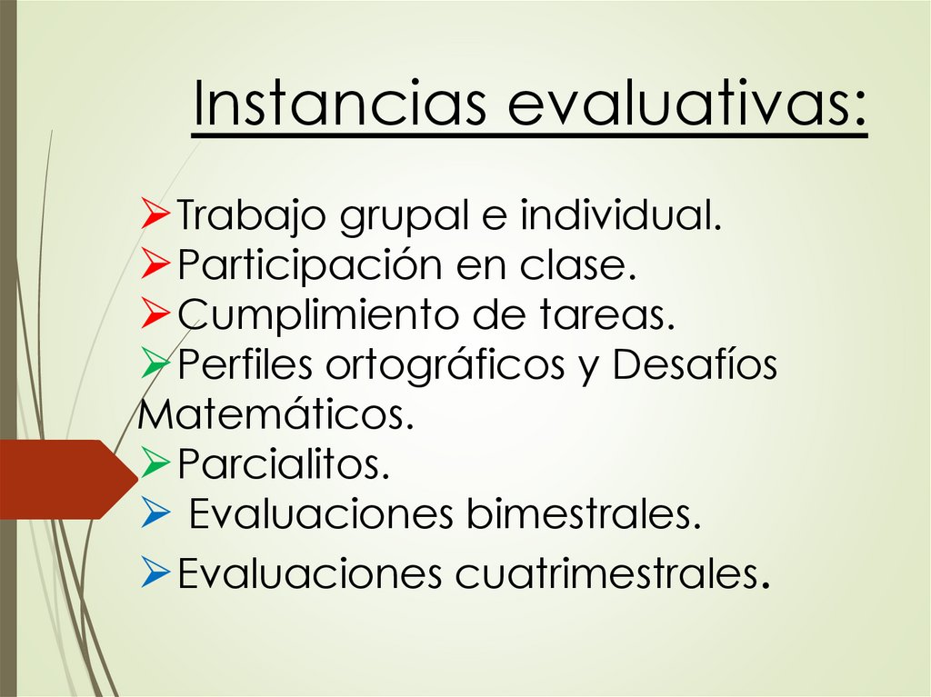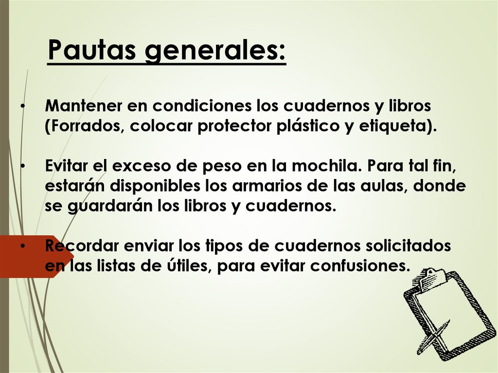 Pautas generales:Mantener en condiciones los cuadernos y libros