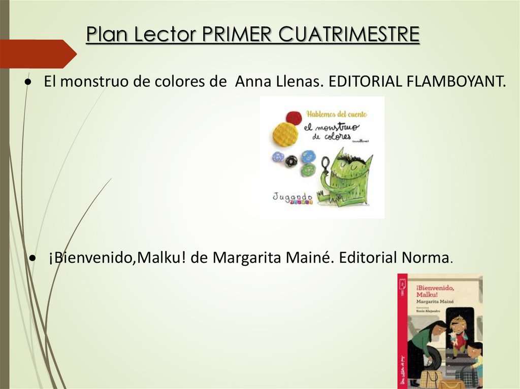Plan Lector PRIMER CUATRIMESTREEl monstruo de colores de Anna Llenas. EDITORIAL FLAMBOYANT.