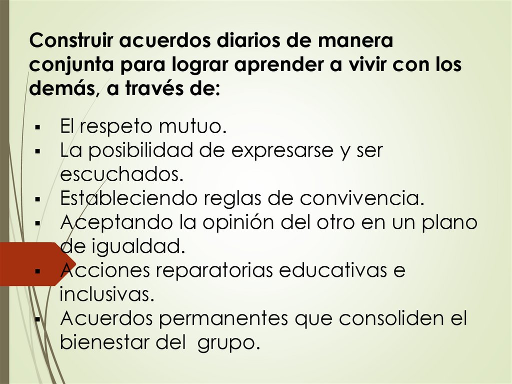 Construir acuerdos diarios de maneraconjunta para lograr aprender a vivir con los
