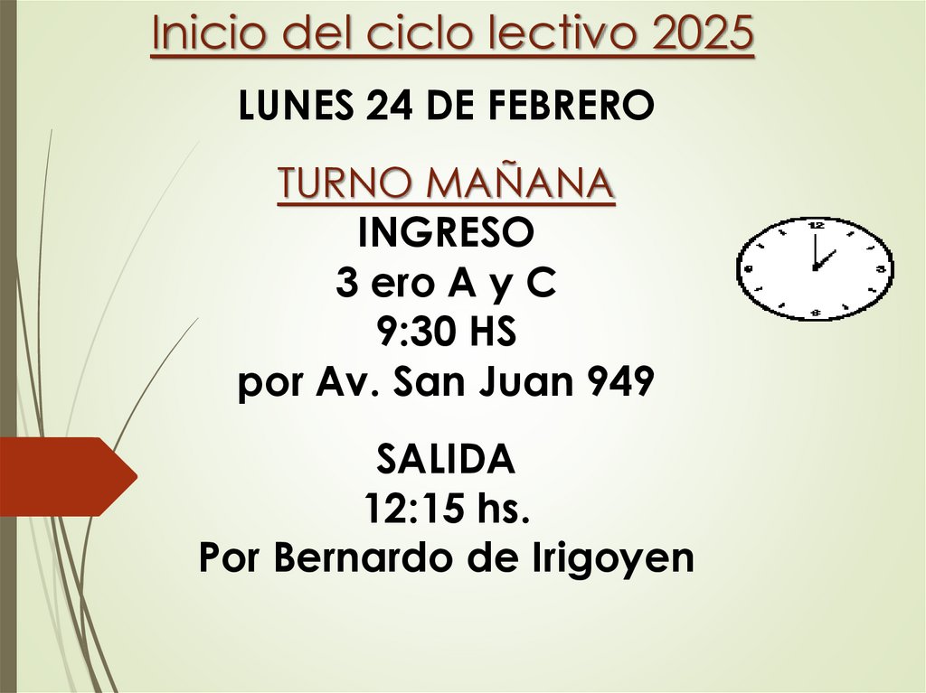 Inicio del ciclo lectivo 2025LUNES 24 DE FEBRERO