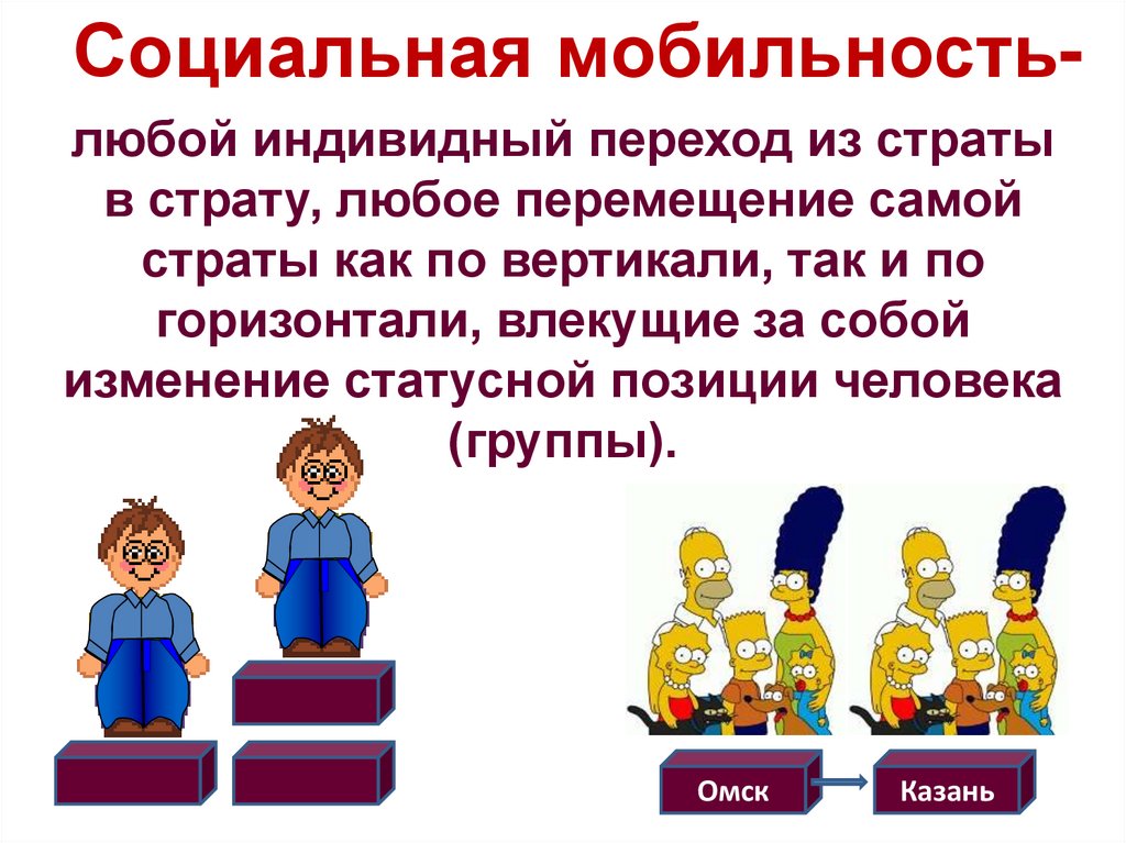 Социальная мобильностьлюбой индивидный переход из стратыв страту, любое перемещение самой