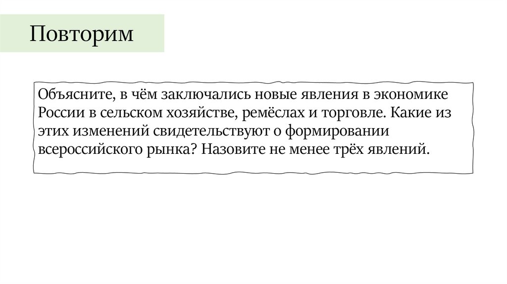 ПовторимОбъясните, в чём заключались новые явления в экономике