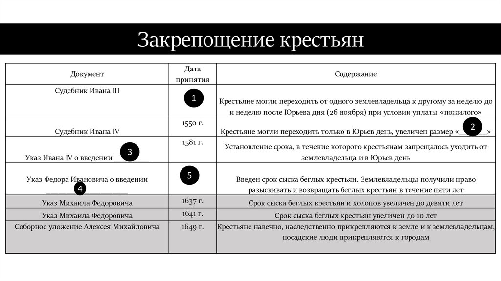 Крестьяне могли переходить только в Юрьев день, увеличен размер «_______»