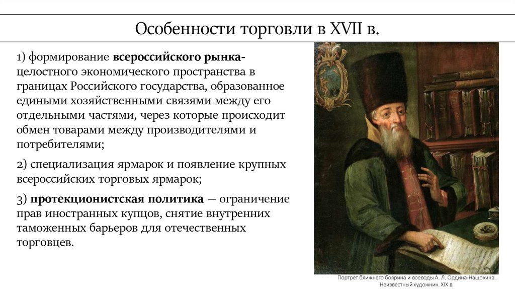Особенности торговли в XVII в.1) формирование всероссийского рынкацелостного экономического пространства в