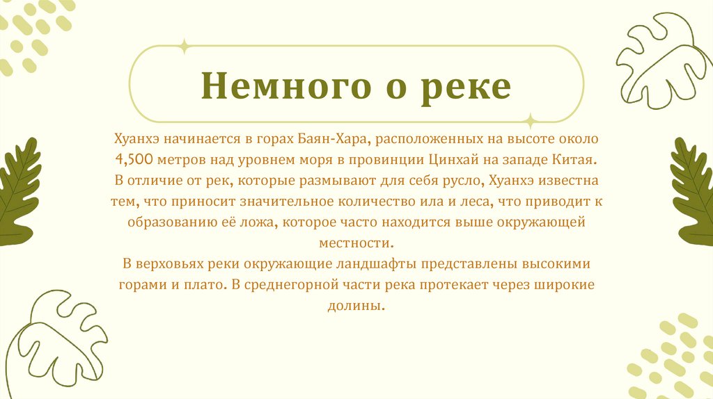 Немного о рекеХуанхэ начинается в горах Баян-Хара, расположенных на высоте около