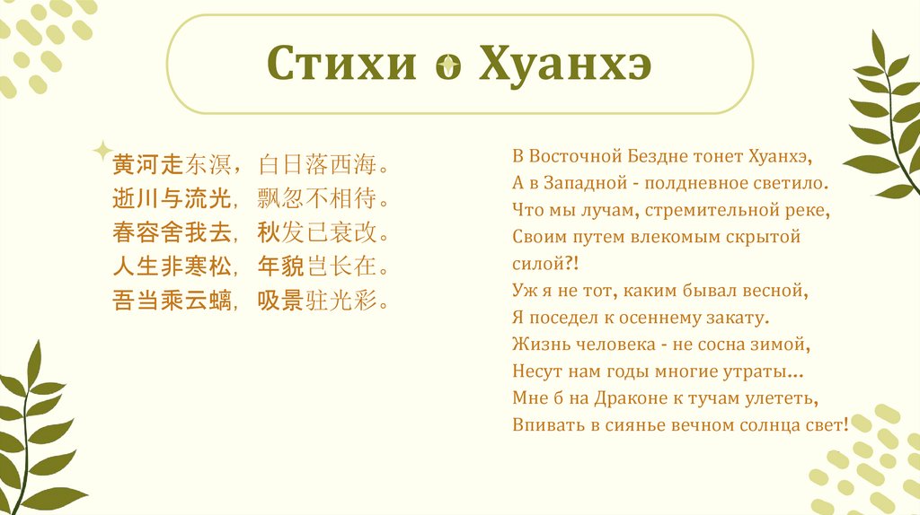 Стихи о Хуанхэ欲折杨枝惜无力 庭前已无嫩柳痕。