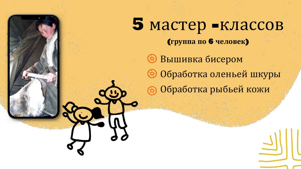 5 мастер -классов(группа по 6 человек)