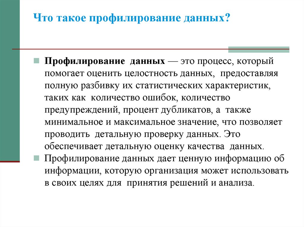 профилировании данных.