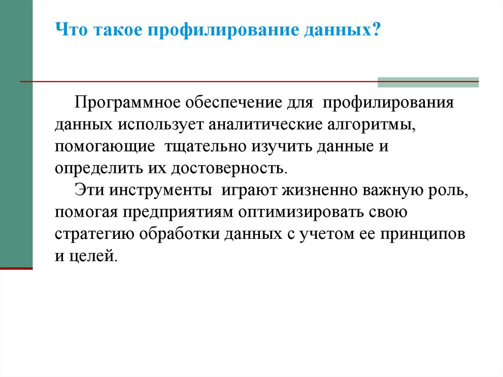 требования к профилированию данных. Следовательно, инструмент должен