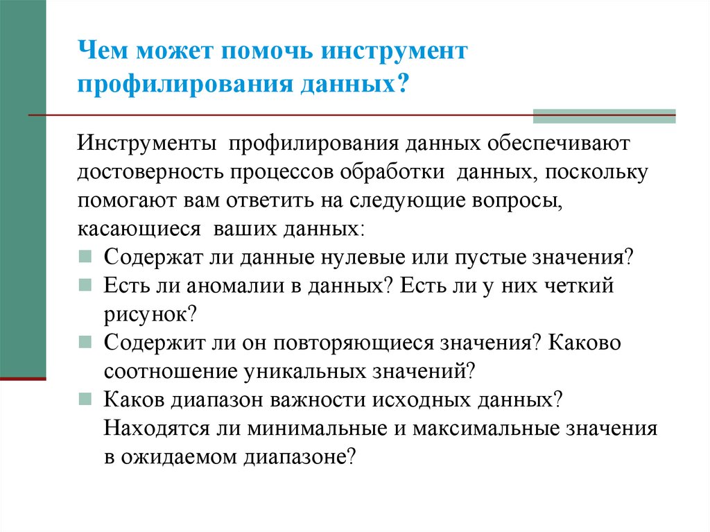 инструмента профилирования данных является его способность