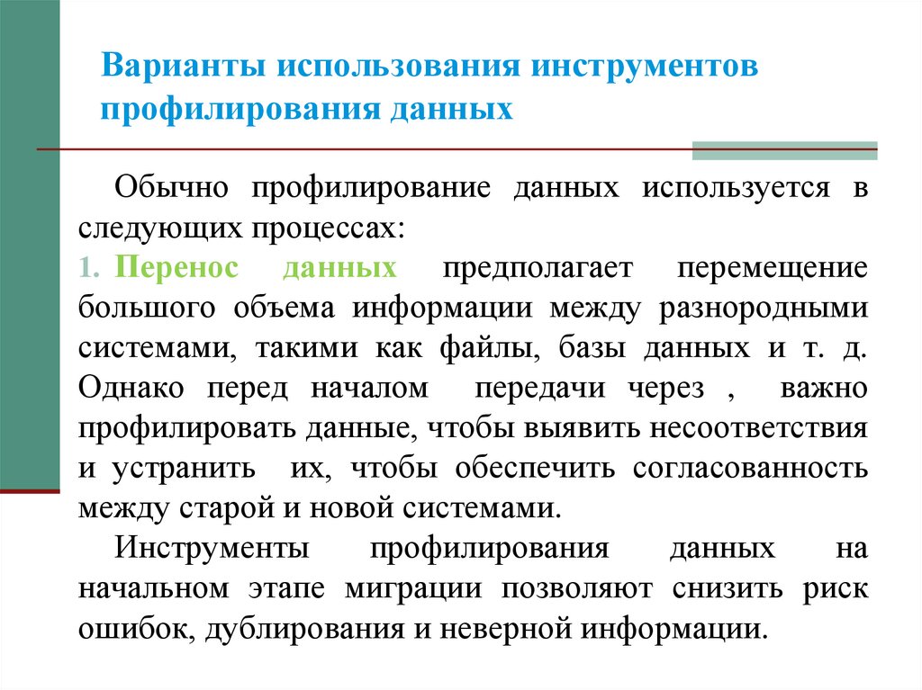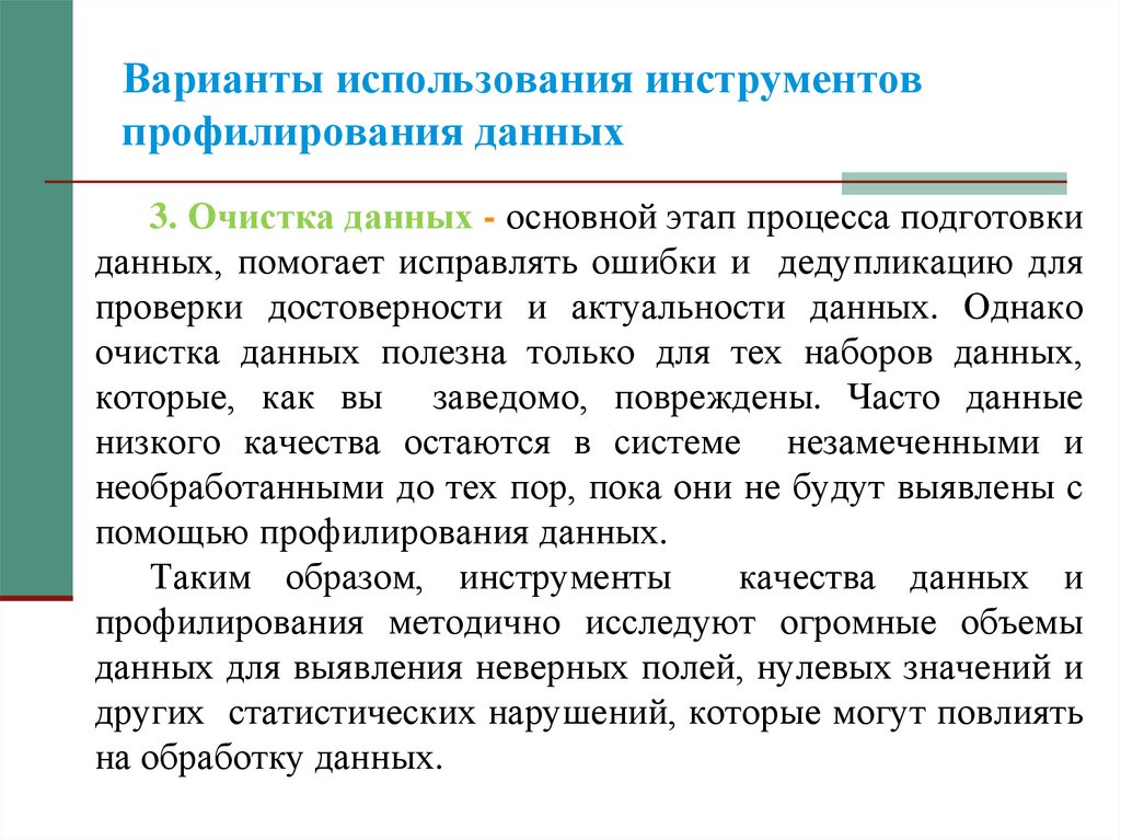инструментов профилирования данных и подумайте, насколько они