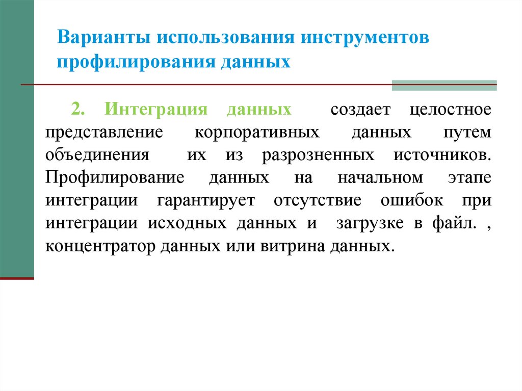 организации. Инструмент профилирования данных должен иметь