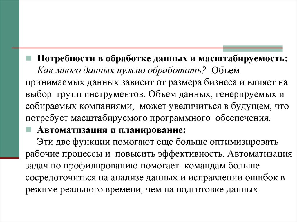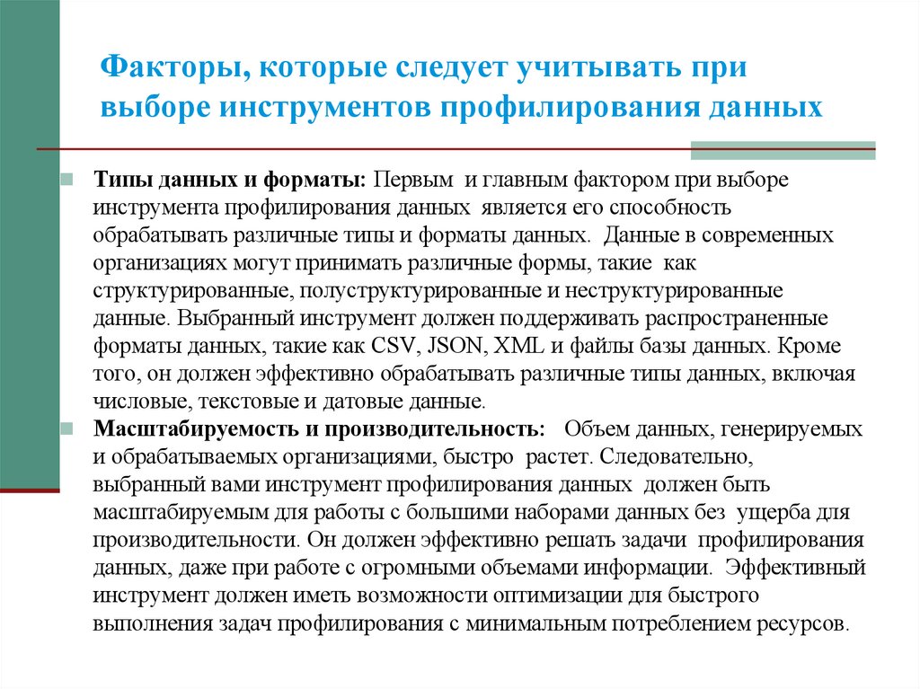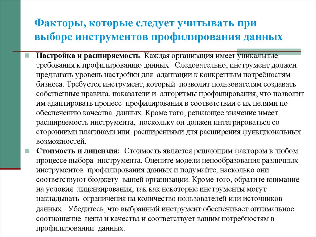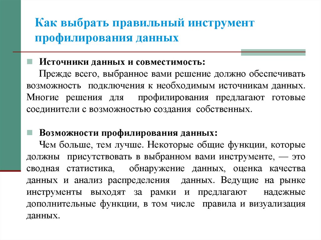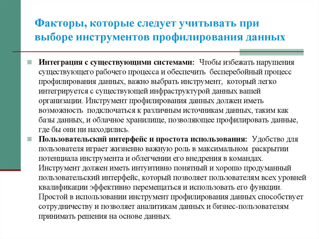 Факторы, которые следует учитывать привыборе инструментов профилирования данных
