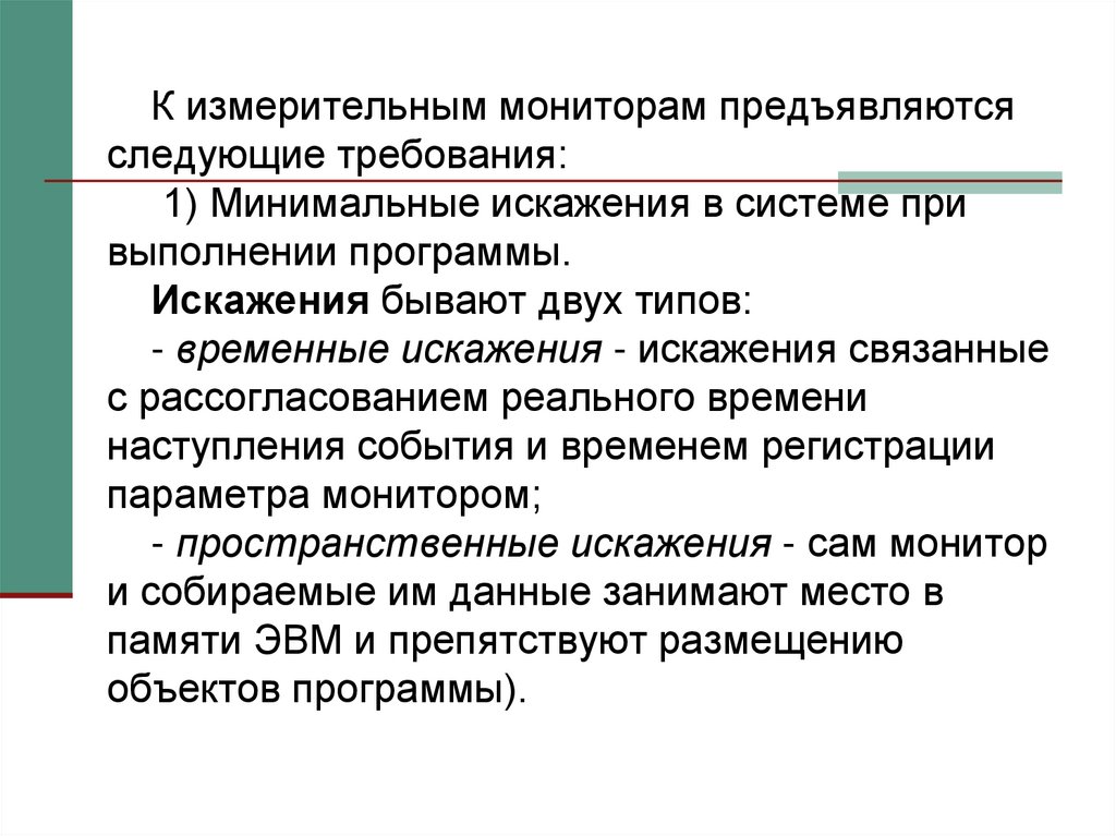 К измерительным мониторам предъявляютсяследующие требования: