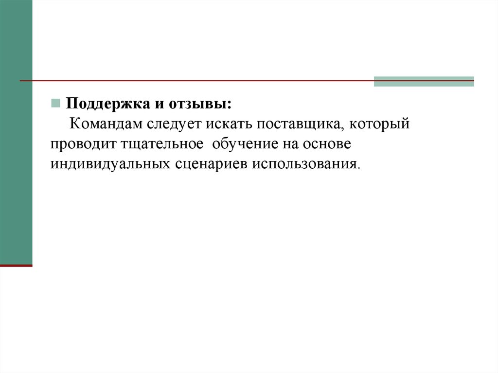 Поддержка и отзывы:Командам следует искать поставщика, который