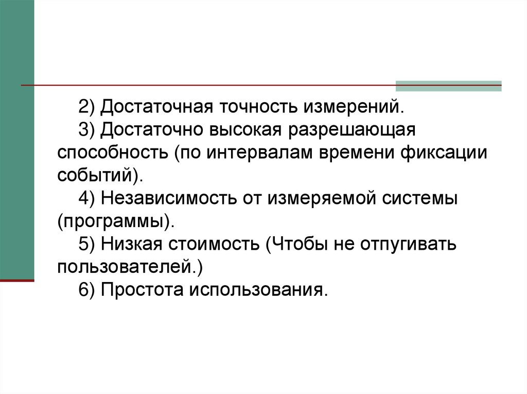 2) Достаточная точность измерений.3) Достаточно высокая разрешающая