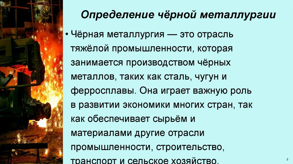 Определение чёрной металлургии25.02.2025