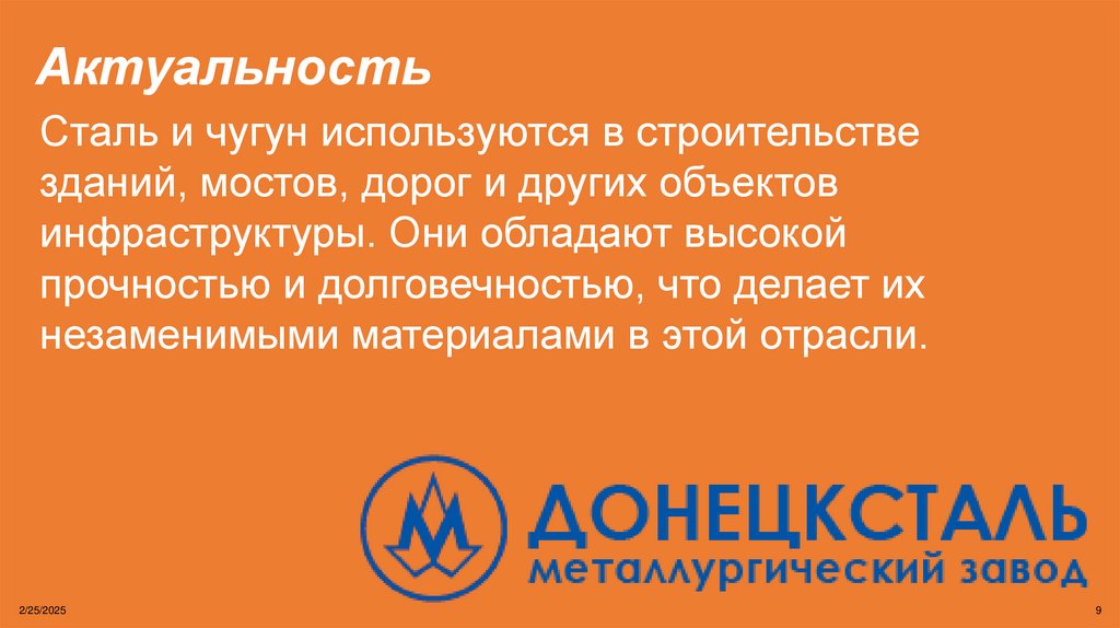 АктуальностьСталь и чугун используются в строительстве