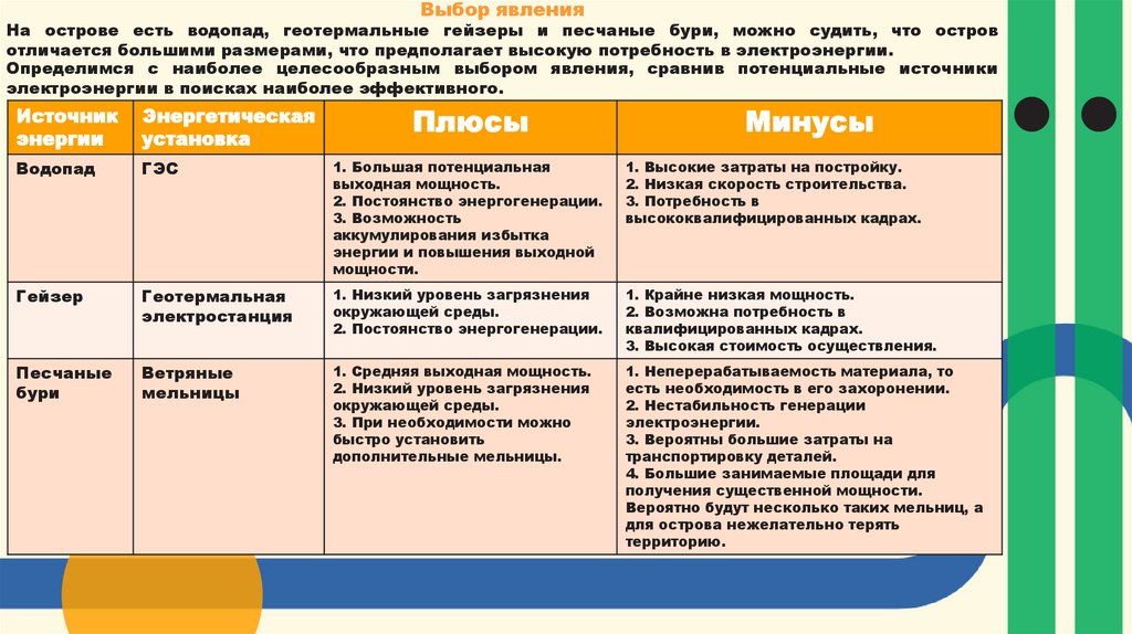 Определимся с наиболее целесообразным выбором явления, сравнив потенциальные источники