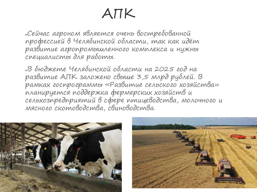 развитие АПК заложено свыше 3,5 млрд рублей. В