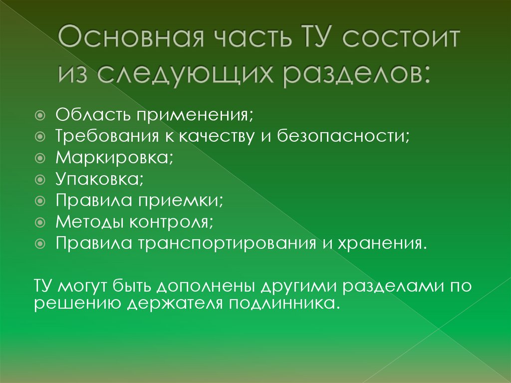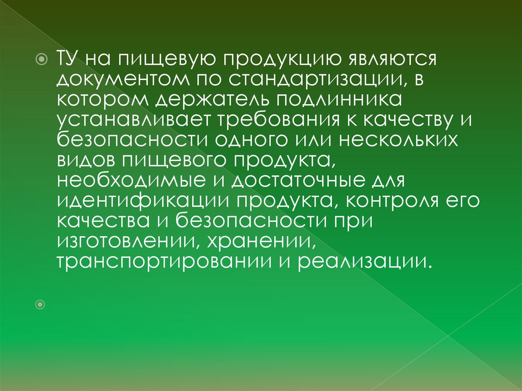 ТУ на пищевую продукцию являютсядокументом по стандартизации, в