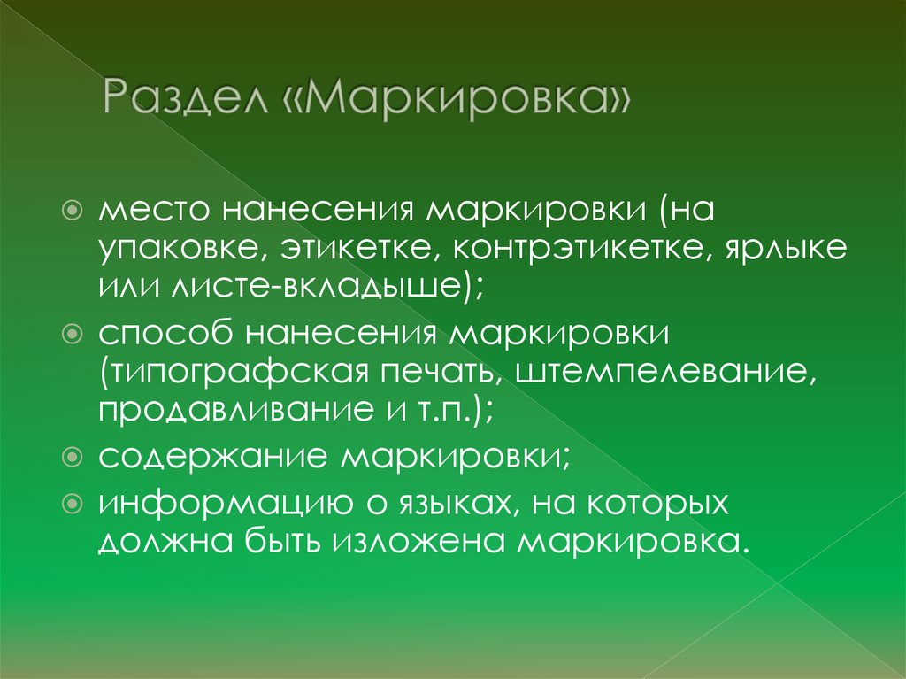 место нанесения маркировки (наупаковке, этикетке, контрэтикетке, ярлыке