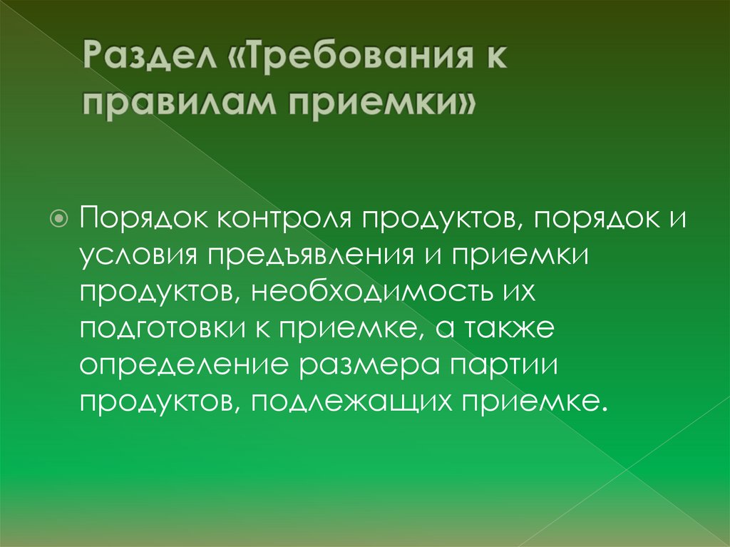 Порядок контроля продуктов, порядок иусловия предъявления и приемки