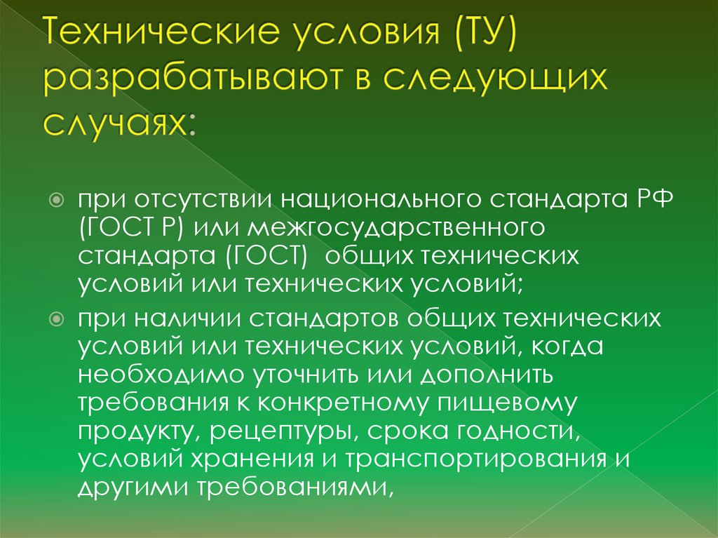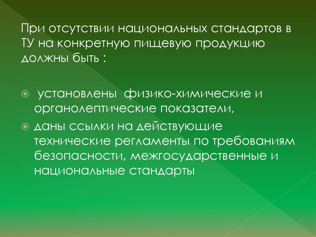При отсутствии национальных стандартов вТУ на конкретную пищевую продукцию