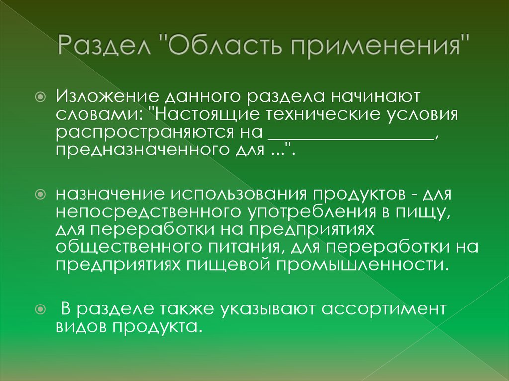 Изложение данного раздела начинаютсловами: "Настоящие технические условия