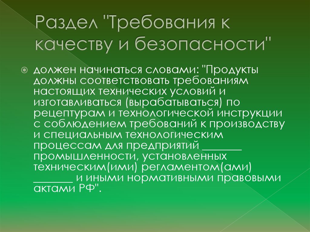 должен начинаться словами: "Продуктыдолжны соответствовать требованиям