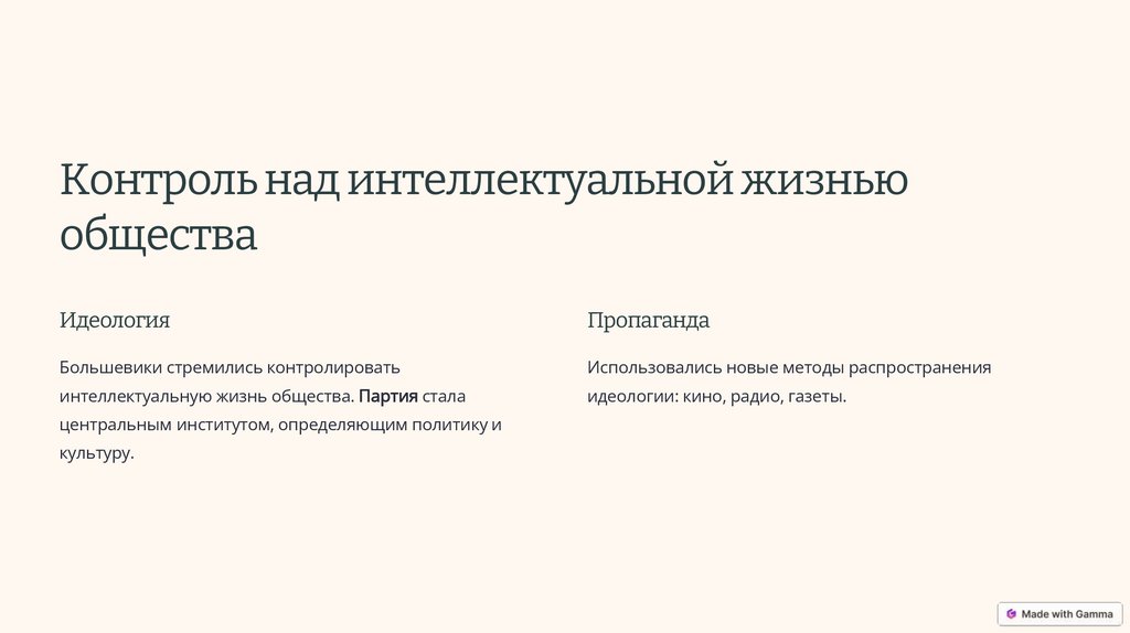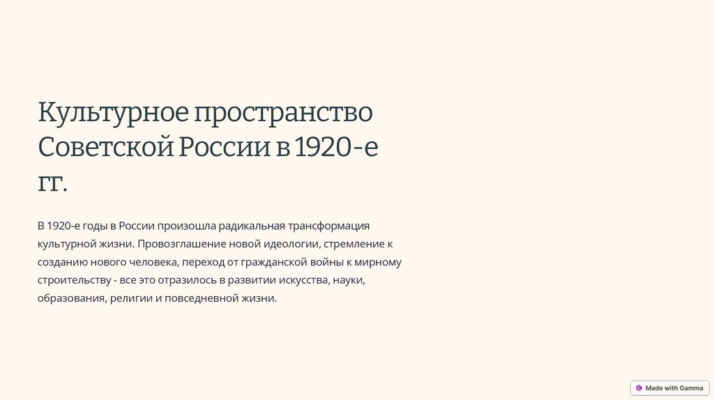 культурной жизни. Провозглашение новой идеологии, стремление к