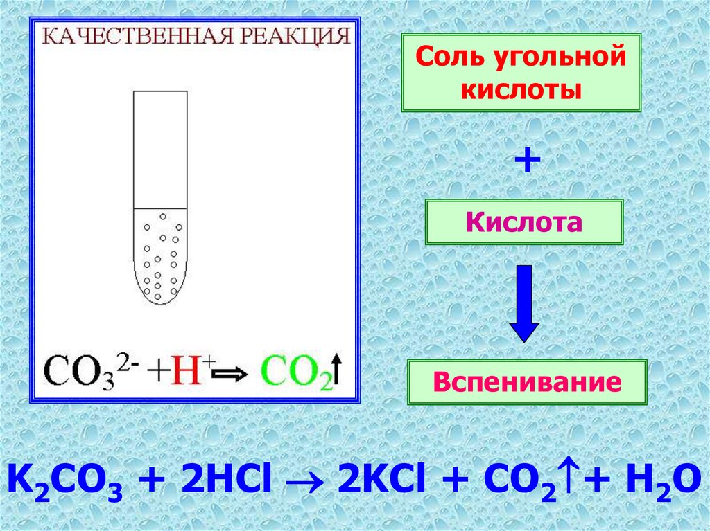 K2CO3 + 2HCl 2KCl + CO2 + H2O