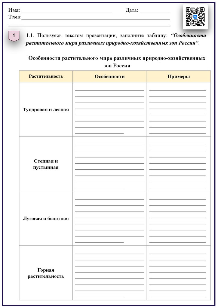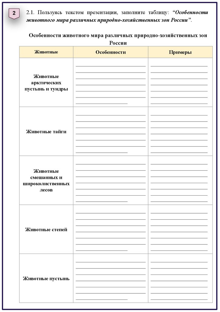 1.1. Пользуясь текстом презентации, заполните таблицу: “Особенности