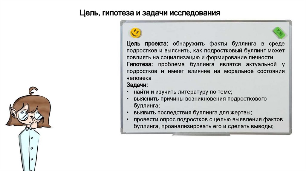 Цель, гипотеза и задачи исследованияЦель проекта: обнаружить факты буллинга в среде