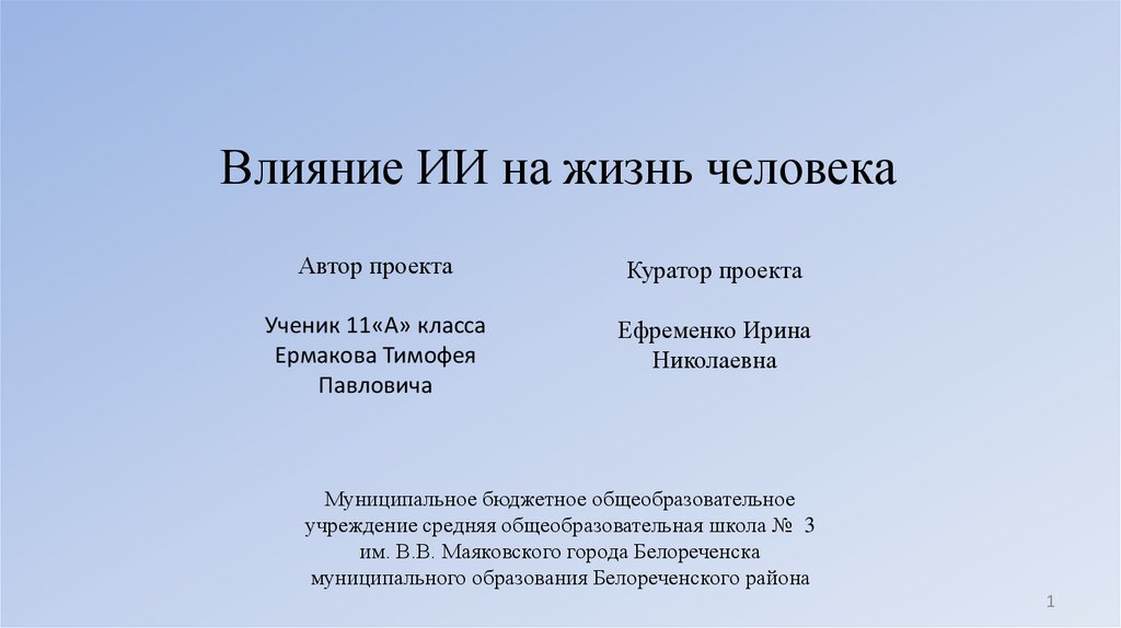 Влияние ИИ на жизнь человекаАвтор проекта