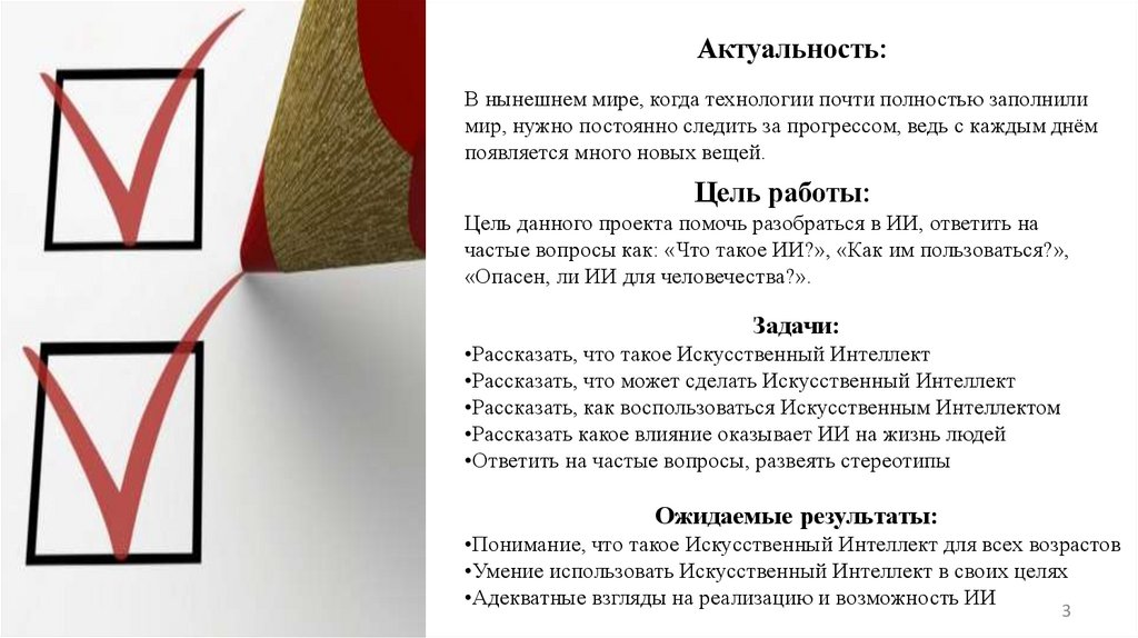 Цель данного проекта помочь разобраться в ИИ, ответить на