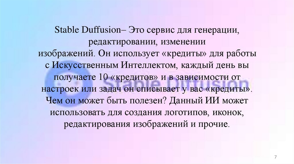 Stable Duffusion– Это сервис для генерации,редактировании, изменении