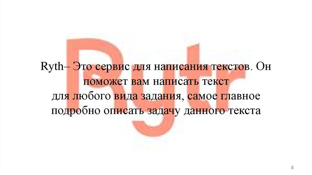 Ryth– Это сервис для написания текстов. Онпоможет вам написать текст