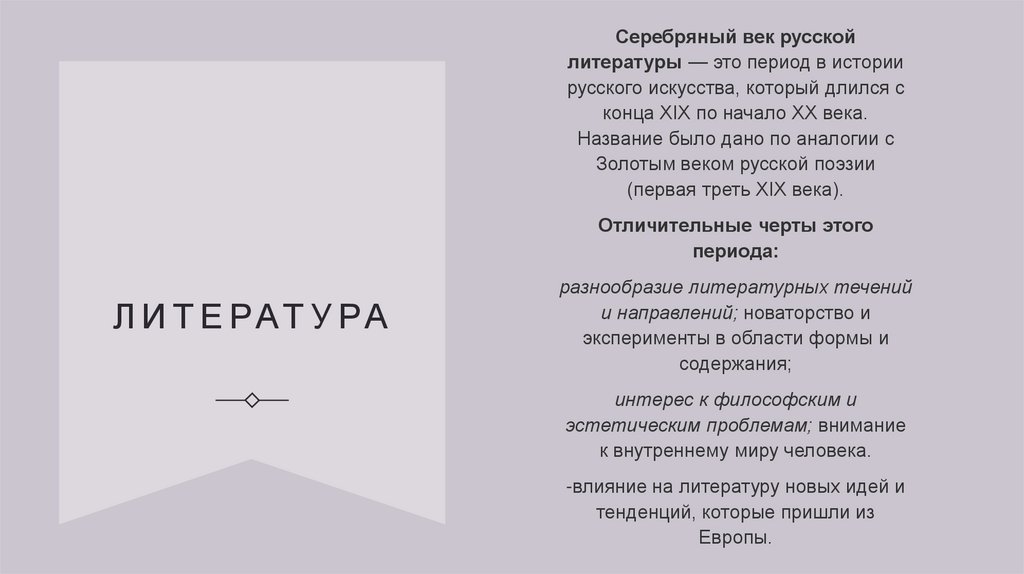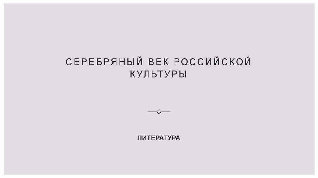 СЕРЕБРЯНЫЙ ВЕК РОССИЙСКОЙК У Л ЬТ У Р Ы