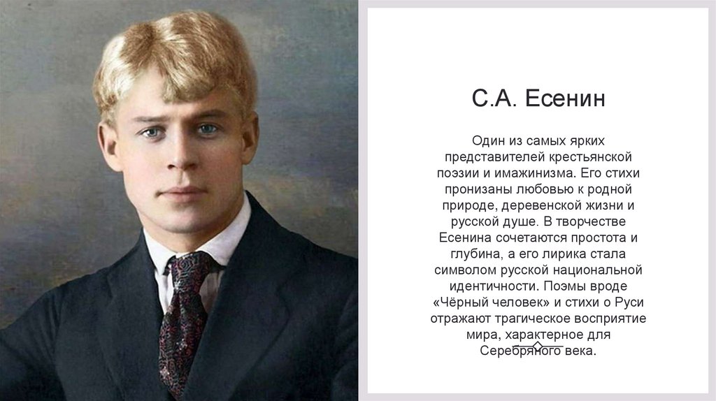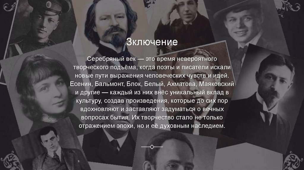 Есенин, Бальмонт, Блок, Белый, Ахматова, Маяковский