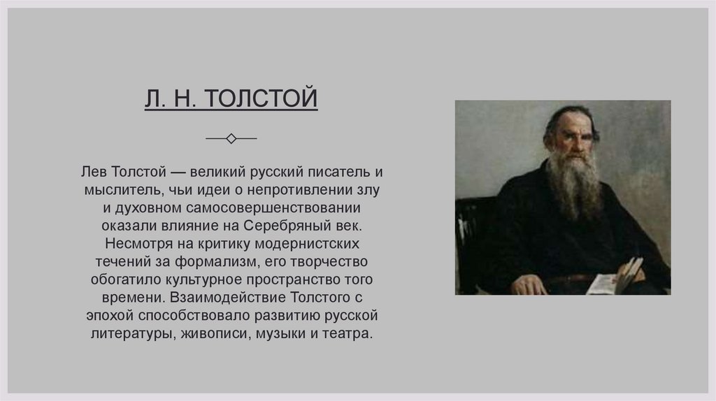 Л. Н. ТОЛСТОЙЛев Толстой — великий русский писатель и