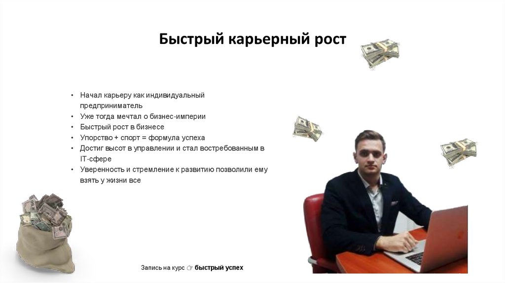 • Быстрый рост в бизнесе