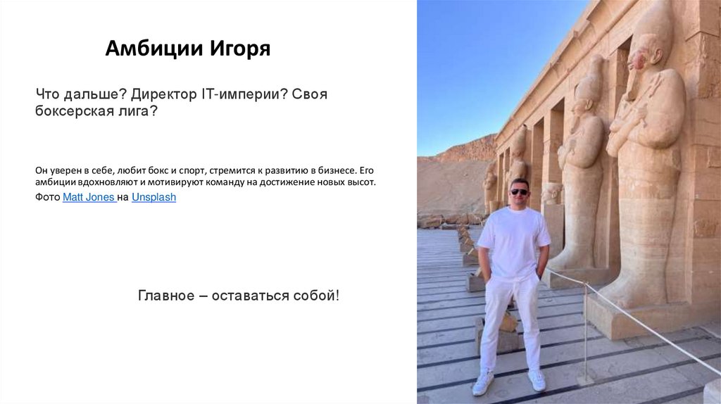 • Уверенность и стремление к развитию позволили ему