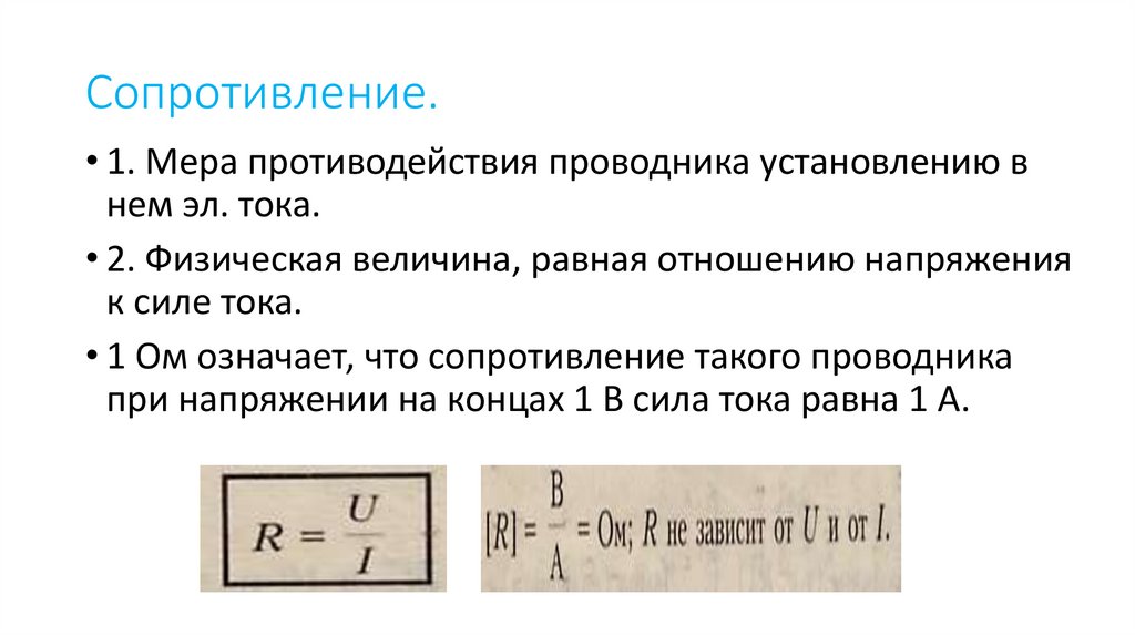 Сопротивление.• 1. Мера противодействия проводника установлению в