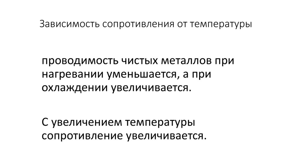 Зависимость сопротивления от температурыпроводимость чистых металлов при