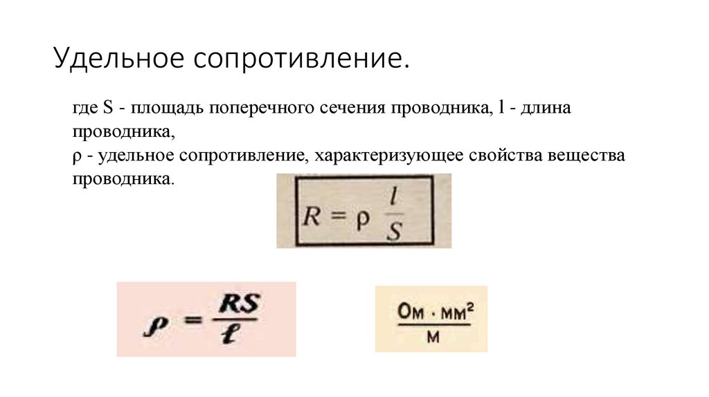Удельное сопротивление.где S - площадь поперечного сечения проводника, l - длина