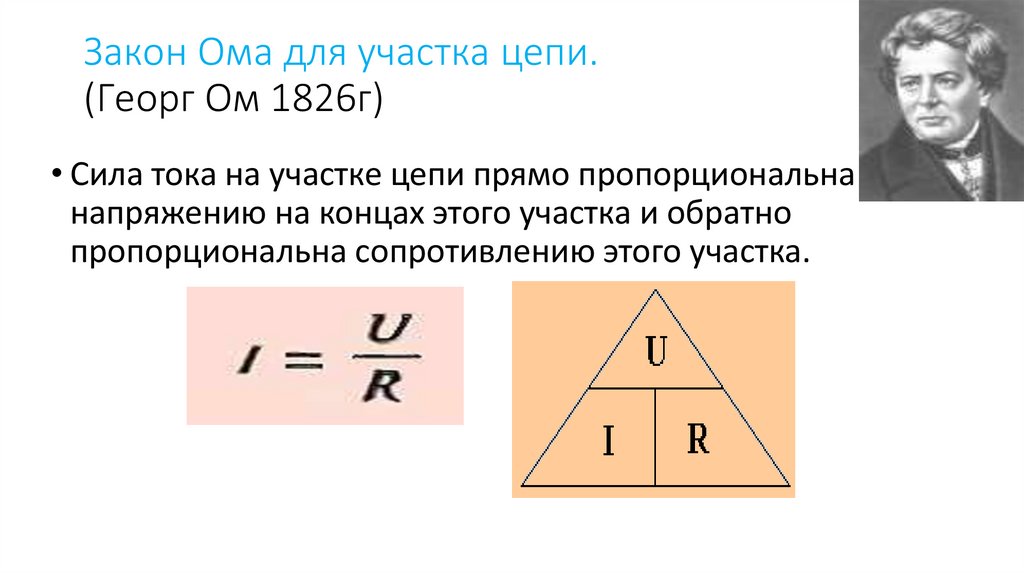 Закон Ома для участка цепи.(Георг Ом 1826г)