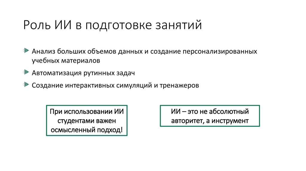Роль ИИ в подготовке занятийАнализ больших объемов данных и создание персонализированных