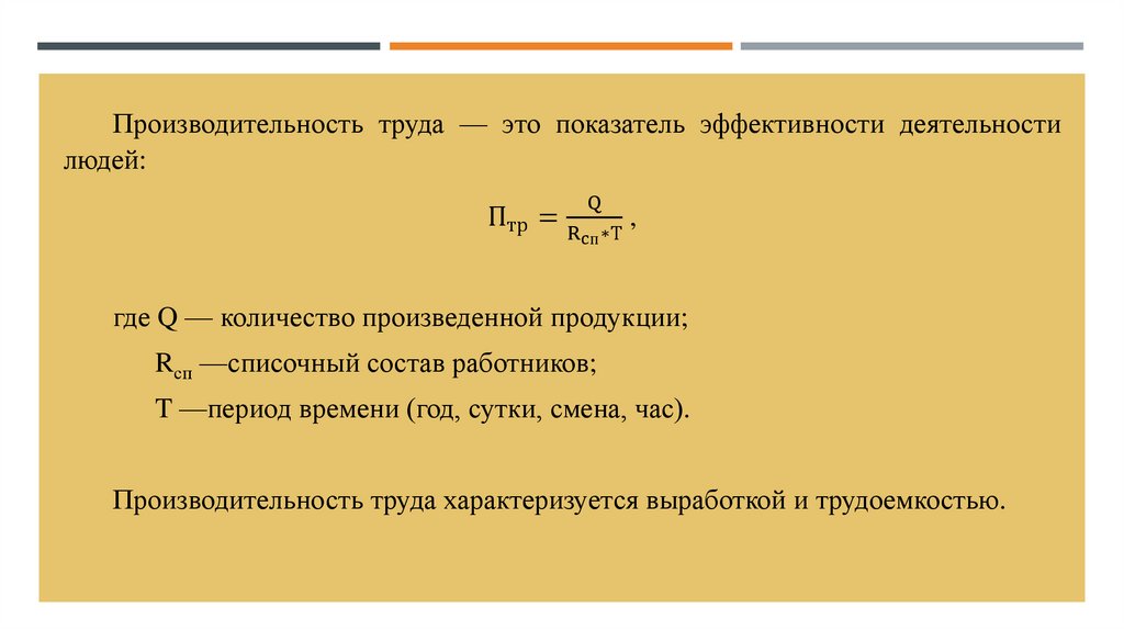 Производительность труда — это показатель эффективности деятельностилюдей: