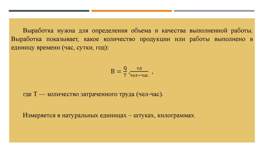 Выработка нужна для определения объема и качества выполненной работы.Выработка показывает, какое количество продукции или работы выполнено в